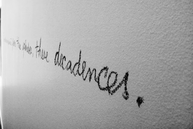 See: Mia (canine Mia) the white fluffball princess sitting, pacing, in the wide east-facing bay window. Big, golden circle of lamplight folded between the wall and the ceiling, cross-sectioned by a shadow of the lampshade frame. Vibrant, glossy green pothos and various ivy plants and ferns. Some dried flowers too, and dried corn stalks. Bluish white twinkle lights on the fireplace mantle and all those odd colorful ornaments lingering up there. No longer Halloween, not quite the winter holidays. Beautiful scalloped ceramic bowl of fresh fruit offering me health. Leathery oranges. Mottled banana. Watching the light outside shift from glowing orange and gold to a sexier, smoother blue and gray. Now purple. Now nearly black. All these, within minutes. Now the full, pregnant moon between the trees.