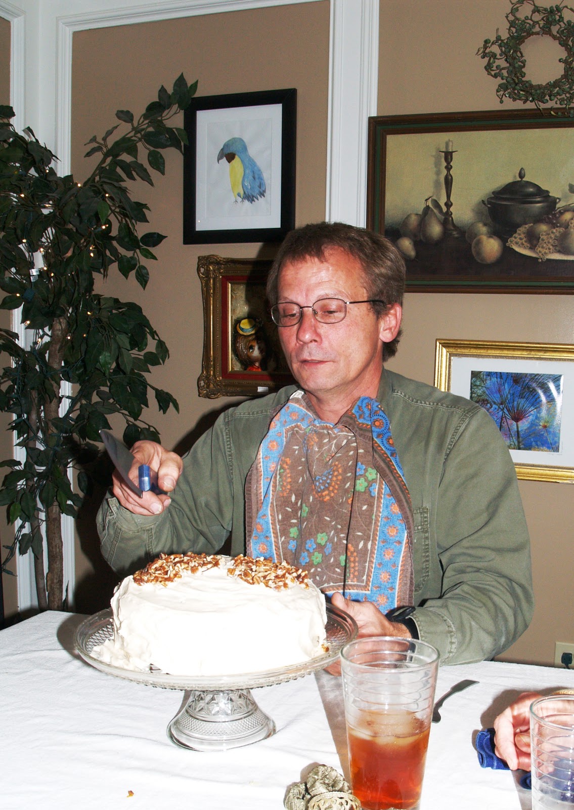 We sat down to the table and shared a giant lasagna with all the trimmings and laughed and laughed and laughed! Then almost immediately after dinner Dad sliced his birthday cake, a butter pecan layer cake with browned-butter cream cheese frosting.