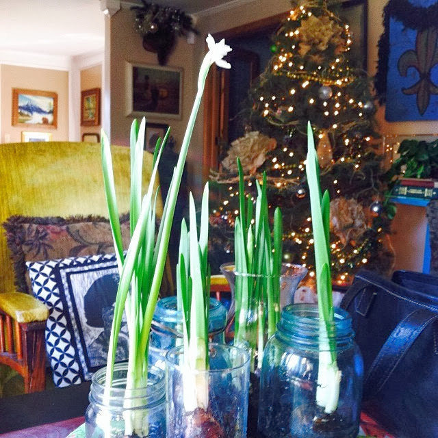 | Paper whites forced in Manure Tea. Three weeks to bloom! December 18th |