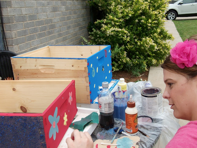 Can you even believe how sweet and bright these girls are? By the way, Lauren is Tracy’s youngest and Haley is Lauren’s friend. They are sheer joy to be around! Well mannered, protective of the little kids, and just plain happy. When all the bee art was complete and they had each made a tie-dye shirt, these girls dove right in and helped with wedding prep! Thank you ladies.