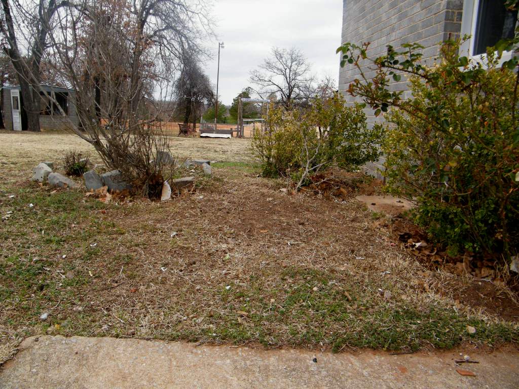 Dreaming of a curved line of monkey grass, herbs galore, and blooming cannas…