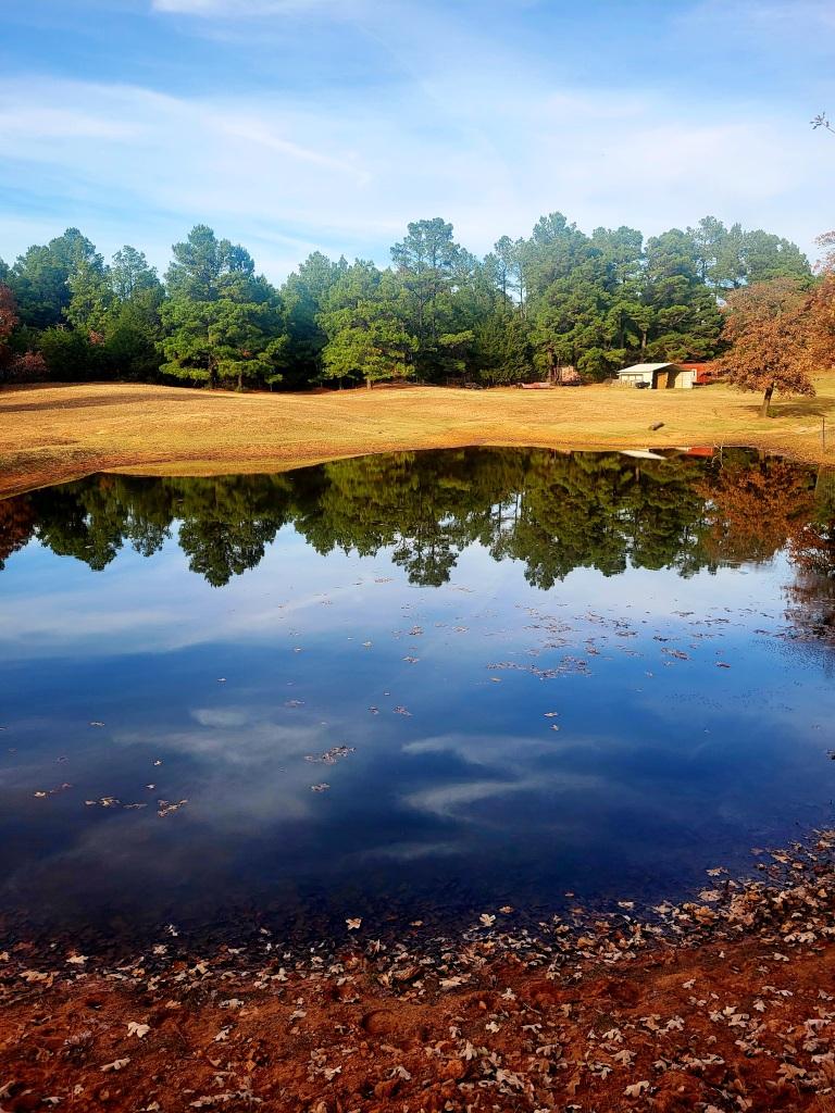 Noticing Johnny Cash make his way all the way downhill to the pond for a sunshine splash.